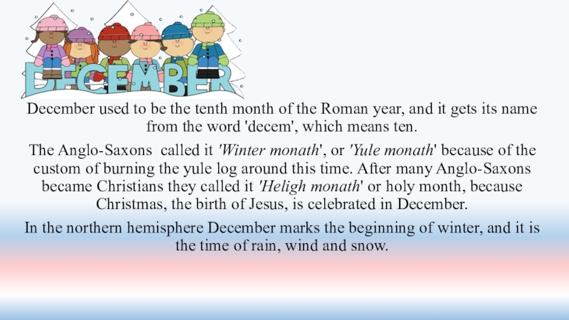 Слайд 39December used to be the tenth month of the Roman year,