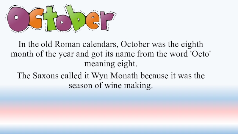 Слайд 33In the old Roman calendars, October was the eighth month of
