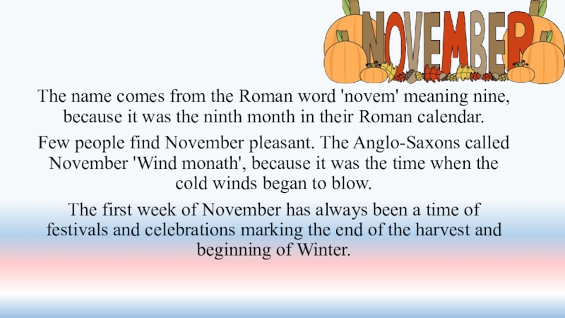 Слайд 35The name comes from the Roman word 'novem' meaning nine, because