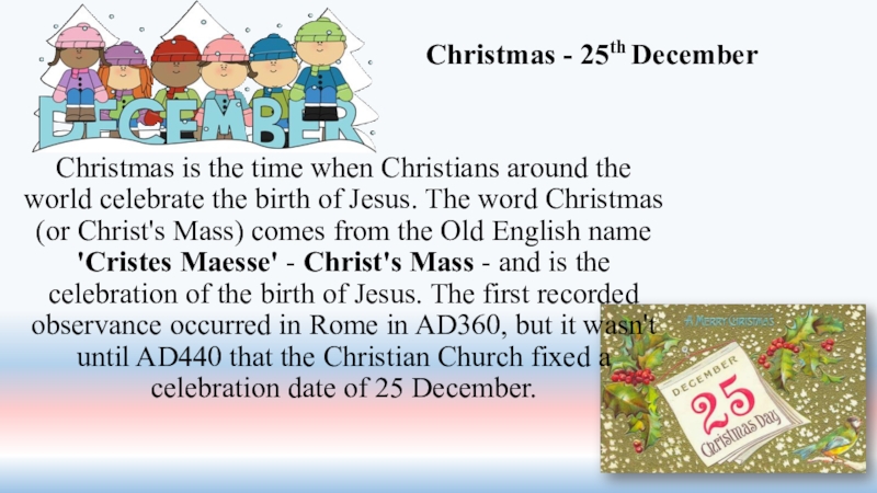 Слайд 40Christmas is the time when Christians around the world celebrate the