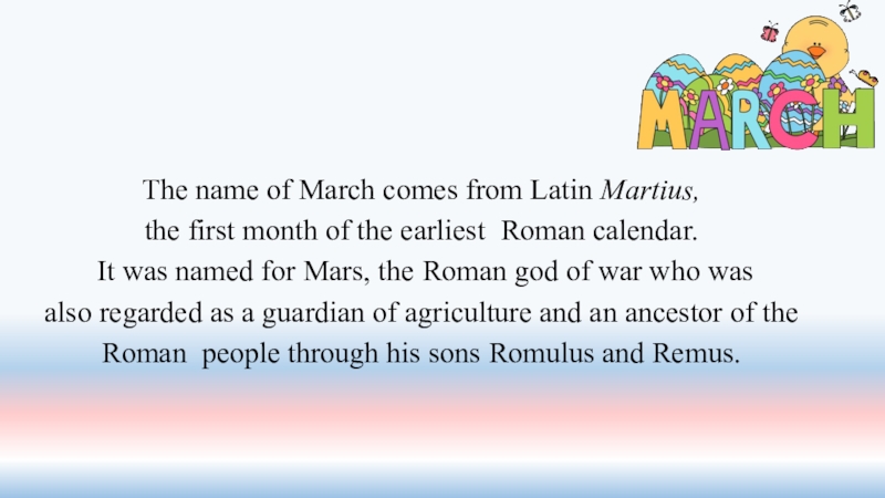 The name of March comes from Latin Martius,