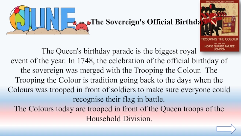 Слайд 24The Queen's birthday parade is the biggest royal