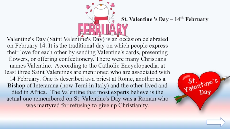 Слайд 10Valentine's Day (Saint Valentine's Day) is an occasion celebrated on February
