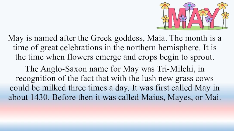 Слайд 19May is named after the Greek goddess, Maia. The month is