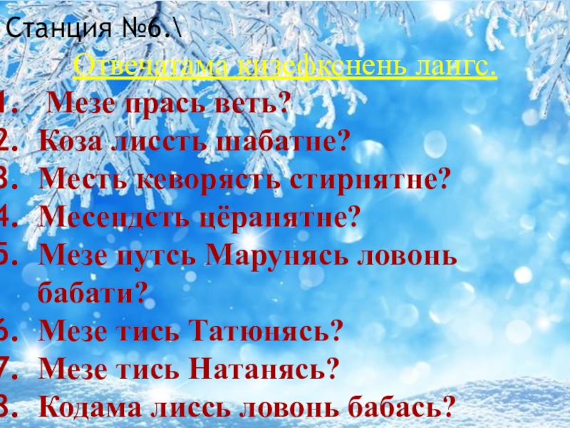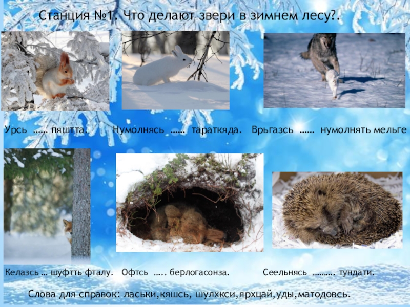 Келазсь … шуфтть фталу. Офтсь ….. берлогасонза. Сеельнясь ………. тундати.