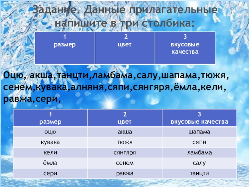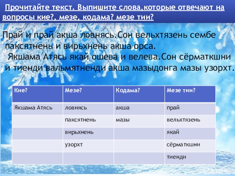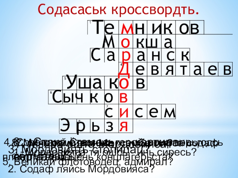 Слова для справок: ласьки,кяшсь, шулхкси,ярхцай,уды,матодовсь.