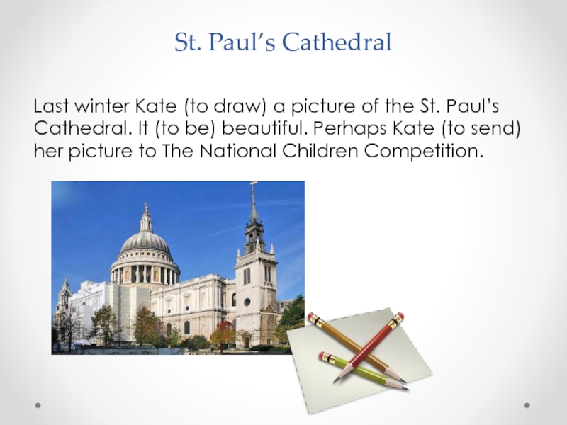 St. Paul’s Cathedral. It (to be) beautiful. Perhaps Kate (to send) her picture to The National Children Competition.