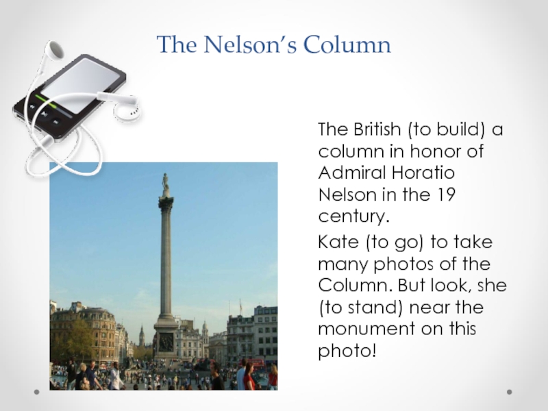 Kate (to go) to take many photos of the Column. But look, she (to stand) near the monument on this photo!