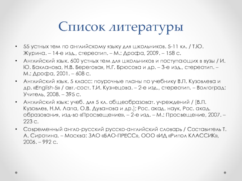 Английский язык: учеб. для 5 кл. общеобразоват. учреждений / [В.П. Кузовлев, Н.М. Лапа, О.В. Дуванова и др.]; Рос. акад. наук, Рос. акад. образования, изд-во «Просвещение». – 2-е изд. – М.: Просвещение, 2007. – 223 с.