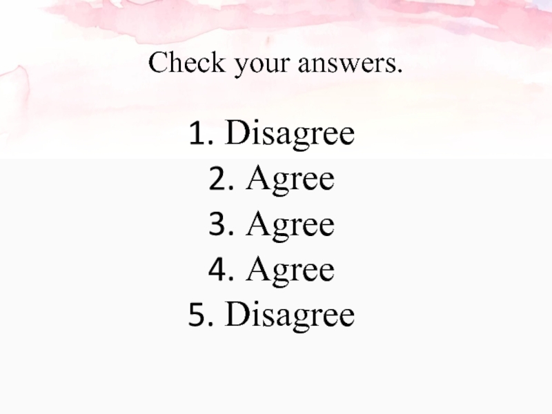 Check your answers.DisagreeAgreeAgreeAgreeDisagree