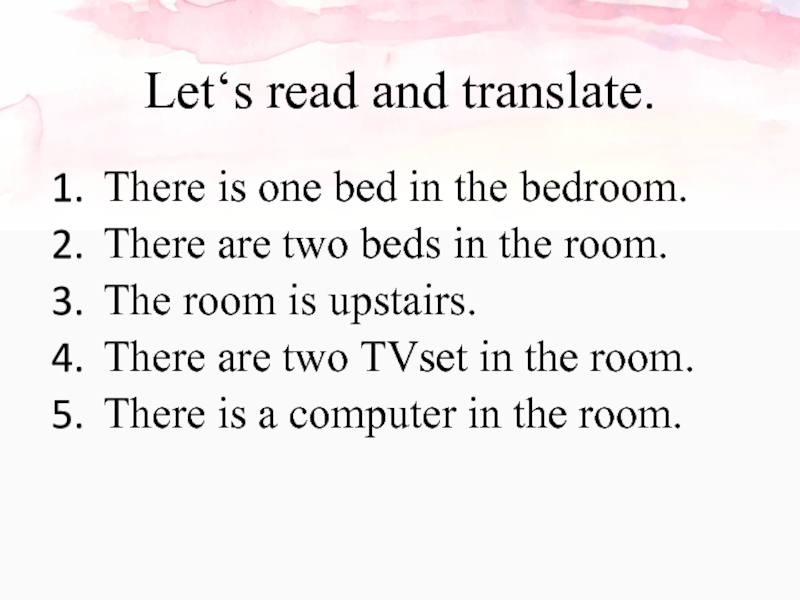 Let‘s read and translate.There is one bed in the bedroom.There are two beds in the room.The room