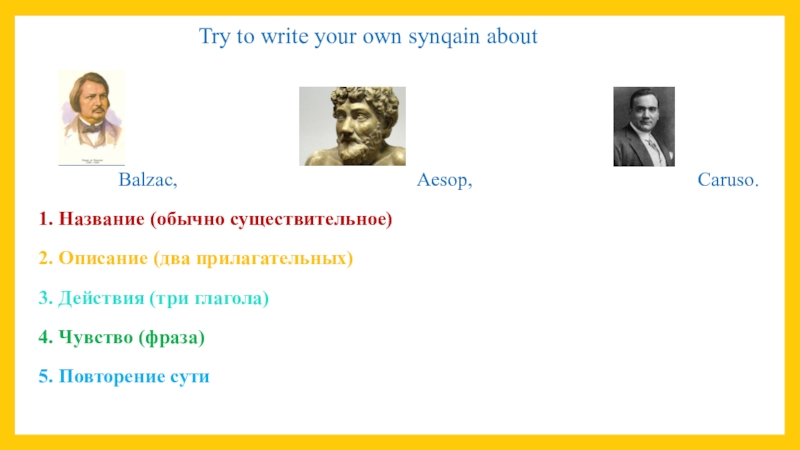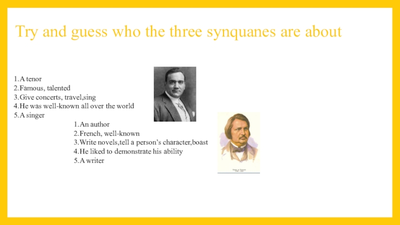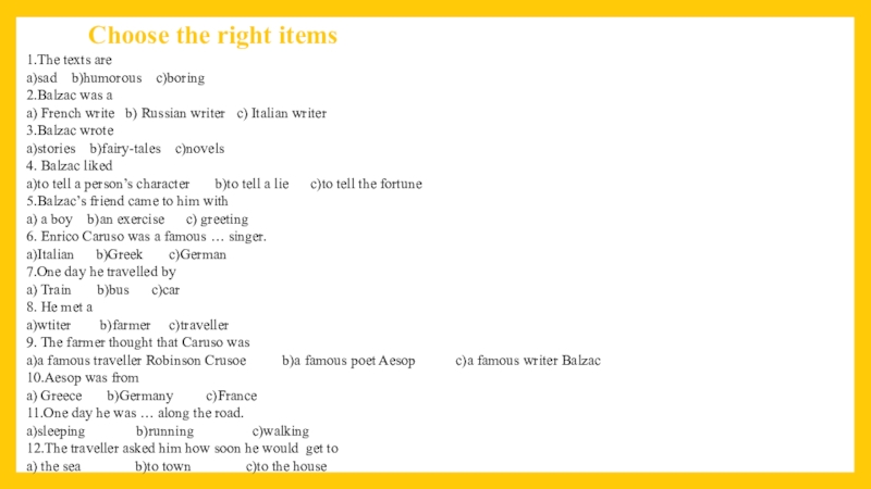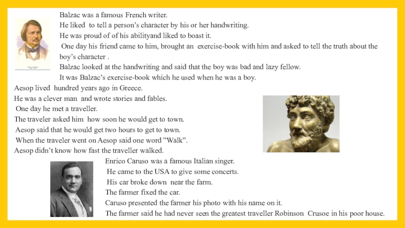 Balzac, Aesop, Caruso.