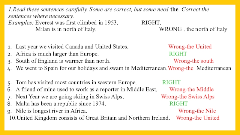 10.United Kingdom consists of Great Britain and Northern Ireland. Wrong-the United