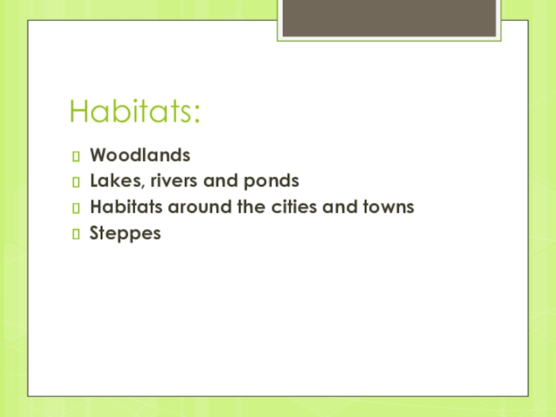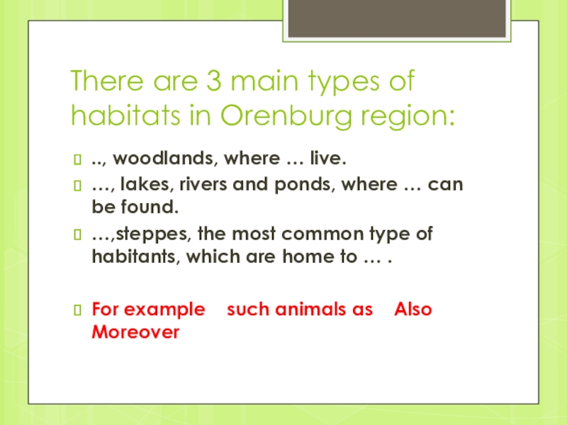 Слайд 10There are 3 main types of habitats in Orenburg region: