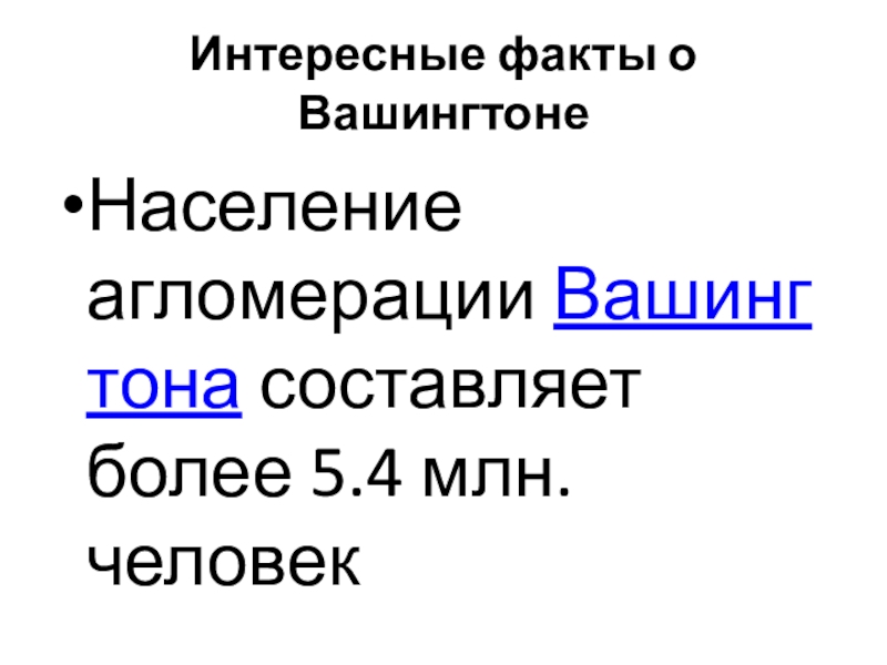Интересные факты о ВашингтонеНаселение агломерации Вашингтона составляет более 5.4 млн. человек