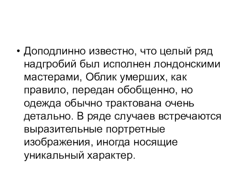 Доподлинно известно, что целый ряд надгробий был исполнен лондонскими мастерами, Облик