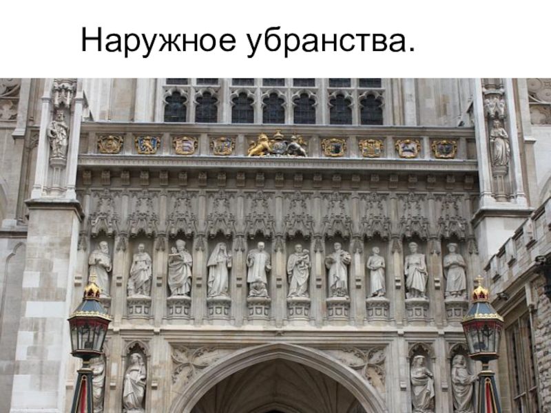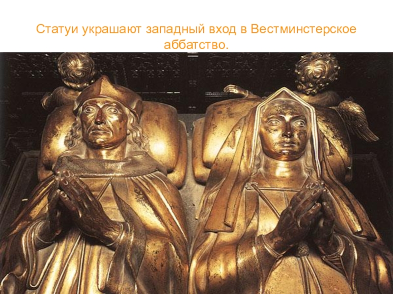 Слайд 21Статуи украшают западный вход в Вестминстерское аббатство.