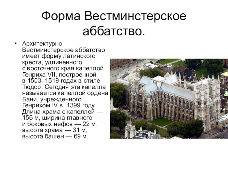 Слайд 9Форма Вестминстерское аббатство.