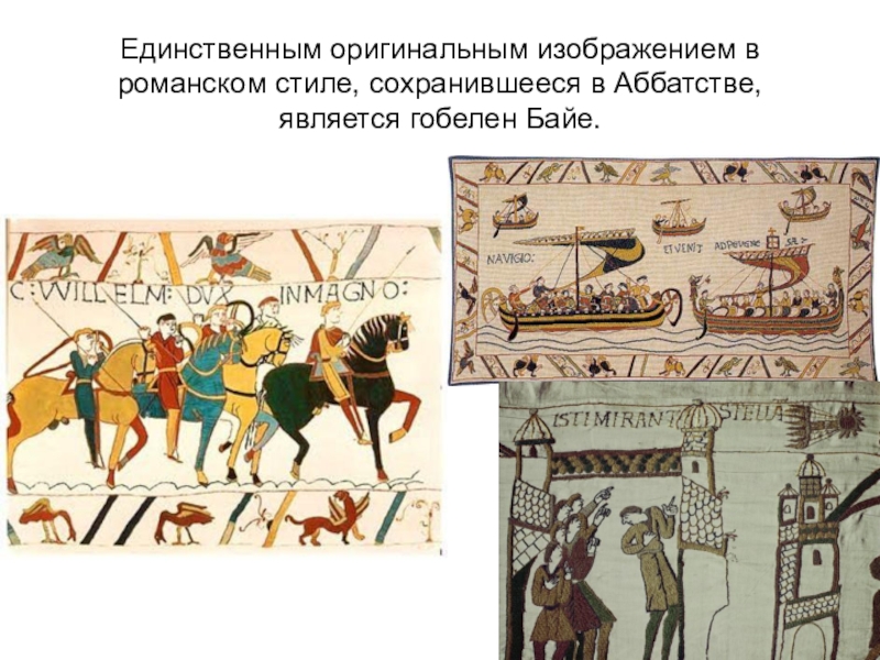 Слайд 10Единственным оригинальным изображением в романском стиле, сохранившееся в Аббатстве, является гобелен