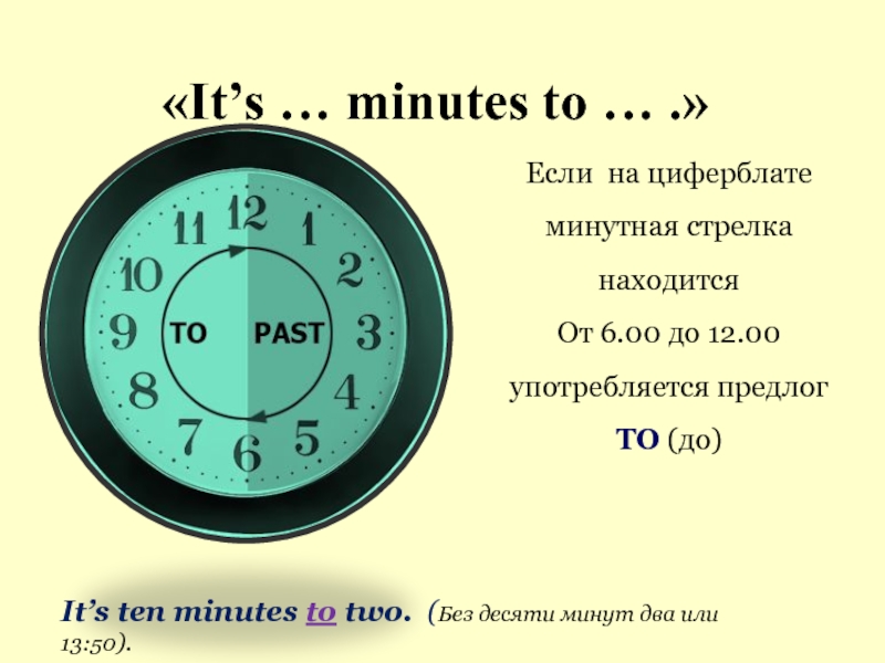 It’s ten minutes to two. (Без десяти минут два или 13:50).
