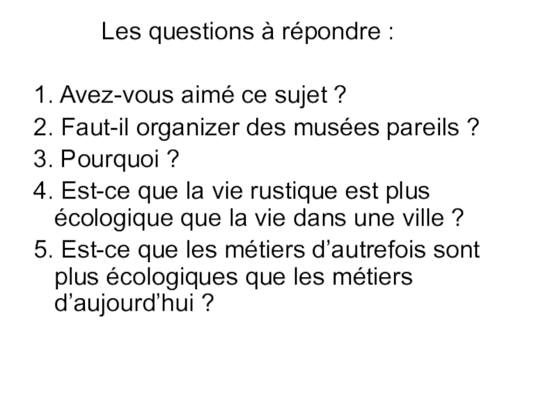 Les questions à répondre :1. Avez-vous aimé ce sujet ?2. Faut-il organizer