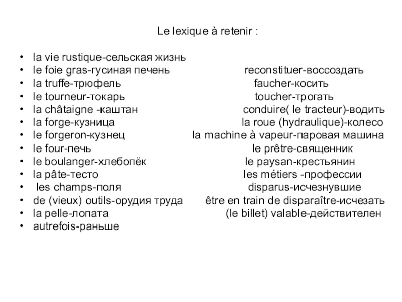 Le lexique à retenir :la vie rustique-сельская жизньle foie gras-гусиная печень