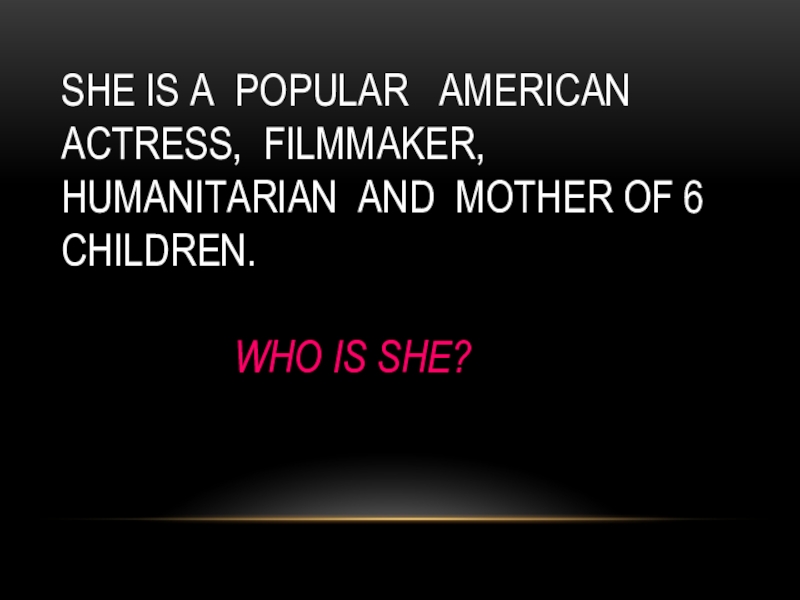 Слайд 21She is a popular american actress, filmmaker, humanitarian and mother of
