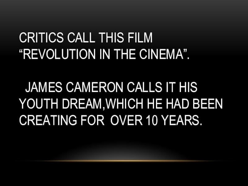Слайд 11Critics call this film “Revolution in the cinema”. james cameron calls