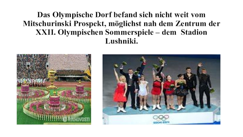 Слайд 10Das Olympische Dorf befand sich nicht weit vom Mitschurinski Prospekt, möglichst