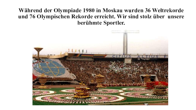 Слайд 11Während der Olympiade 1980 in Moskau wurden 36 Weltrekorde und 76