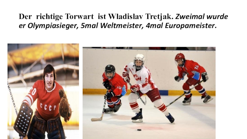Слайд 4Der richtige Torwart ist Wladislav Tretjak. Zweimal wurde er Olympiasieger, 5mal