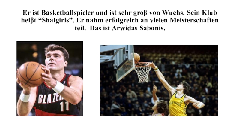 Слайд 14Er ist Basketballspieler und ist sehr groβ von Wuchs. Sein Klub