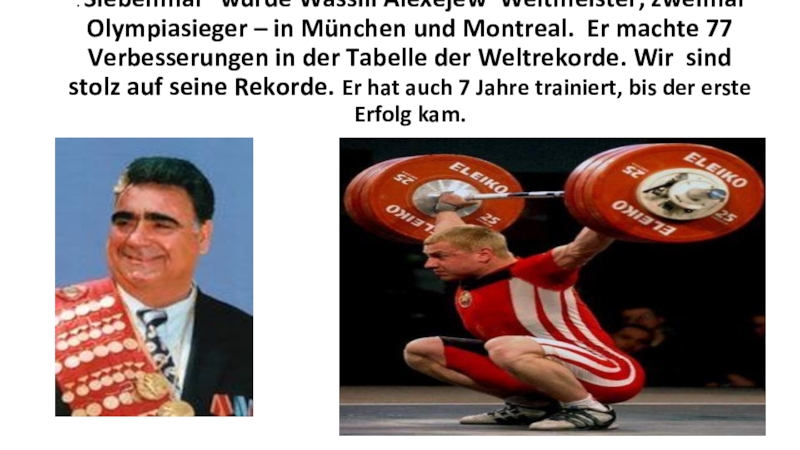 Слайд 3. Siebenmal wurde Wassili Alexejew Weltmeister, zweimal Olympiasieger – in