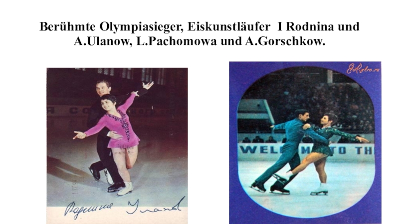 Слайд 12Berühmte Olympiasieger, Eiskunstläufer I Rodnina und A.Ulanow, L.Pachomowa und A.Gorschkow.