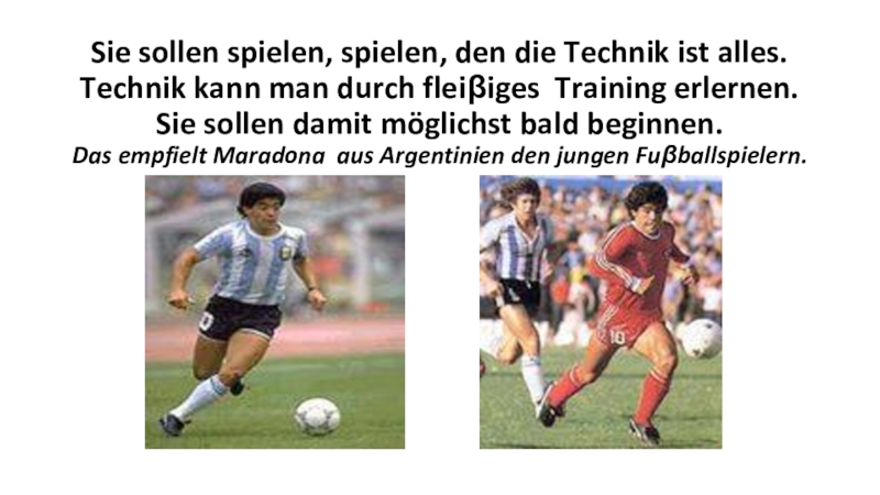 man durch fleiβiges Training erlernen. Sie sollen damit möglichst bald beginnen. Das empfielt Maradona aus Argentinien den jungen Fuβballspielern.