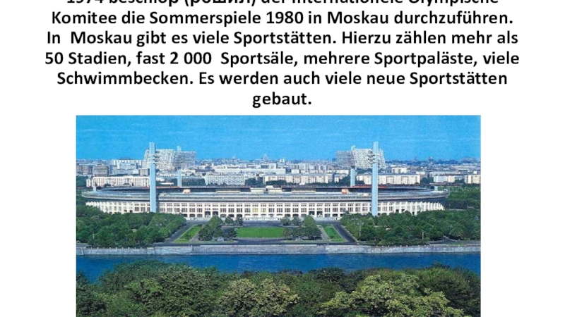 Слайд 71974 beschloβ (решил) der Internationele Olympische Komitee die Sommerspiele 1980 in