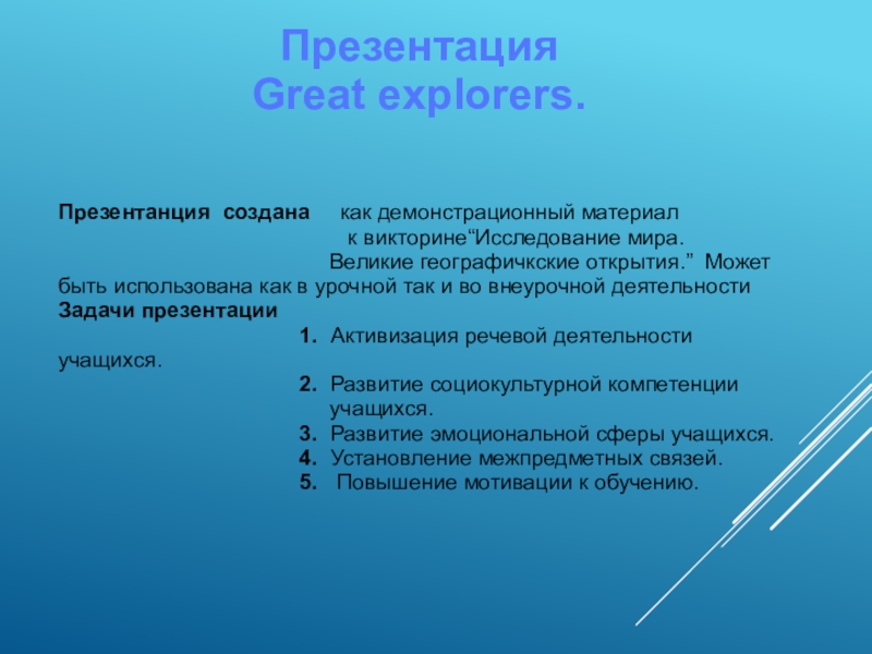 Это сайт презентаций, где можно хранить и обмениваться своими презентациями, докладами, проектами, шаблонами в формате PowerPoint с другими пользователями. Мы помогаем школьникам, студентам, учителям, преподавателям хранить и обмениваться учебными материалами.