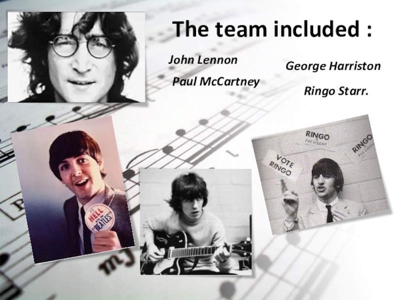 The team included : John LennonPaul McCartney George Harriston Ringo Starr.
