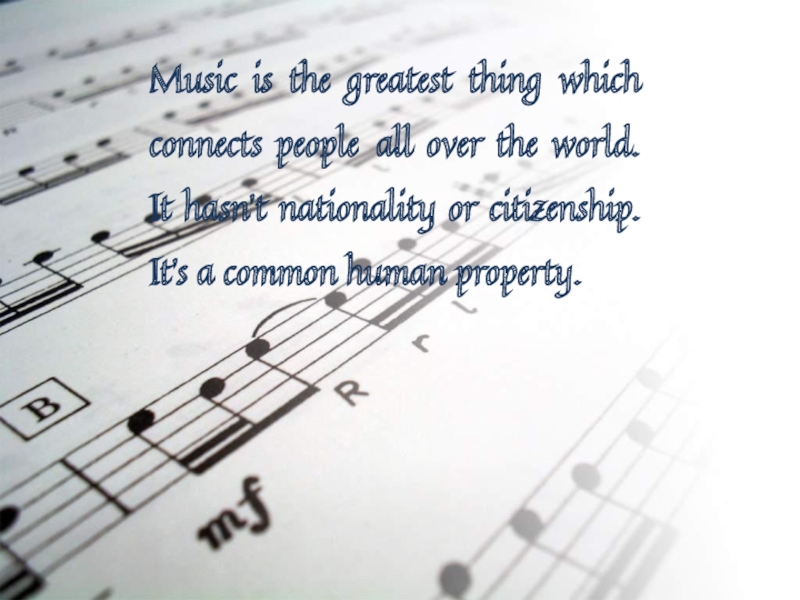 Слайд 3Music is the greatest thing which connects people all over the