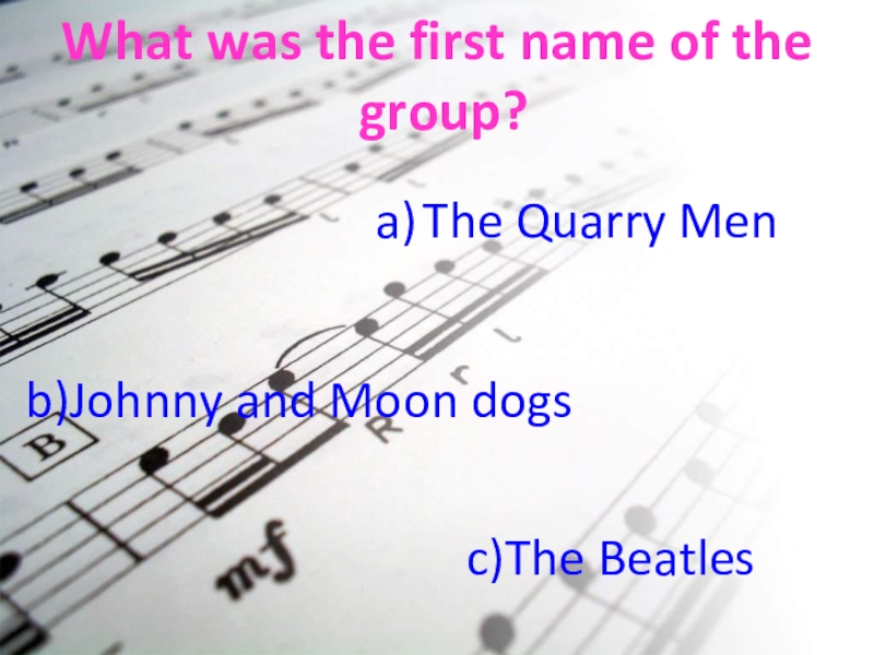 What was the first name of the group?b)Johnny and Moon dogsThe Quarry Menc)The Beatles