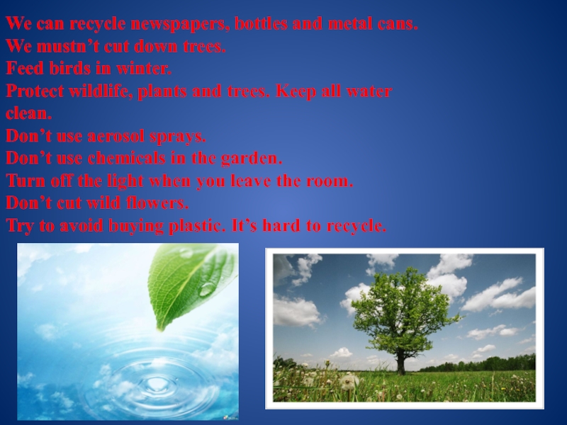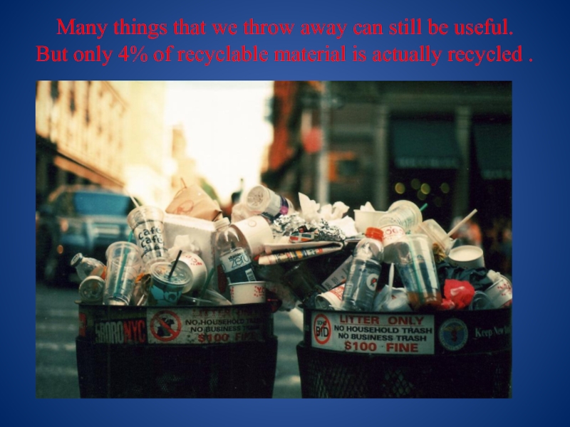 Слайд 25We can recycle newspapers, bottles and metal cans.