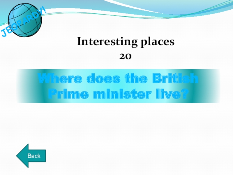 Where does the British Prime minister live?Interesting places20BackJEOPARDY!