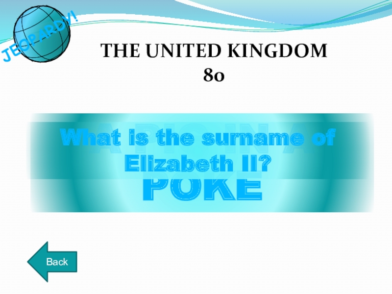 A PIG IN A POKETHE UNITED KINGDOM 80BackWhat is the surname of Elizabeth II?JEOPARDY!