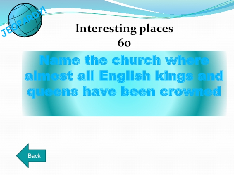 Name the church where almost all English kings and queens have been crownedInteresting places60BackJEOPARDY!
