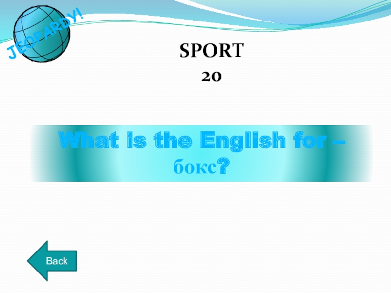 What is the English for – бокс?SPORT20BackJEOPARDY!