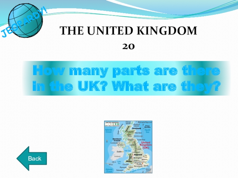 How many parts are there in the UK? What are they?THE UNITED KINGDOM20BackJEOPARDY!
