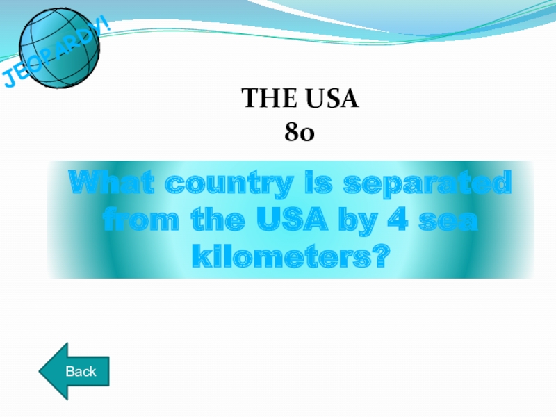 What country is separated from the USA by 4 sea kilometers?THE USA 80BackJEOPARDY!