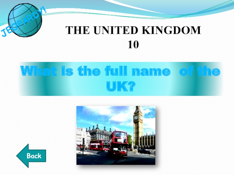 What is the full name of the UK?THE UNITED KINGDOM 10BackJEOPARDY!