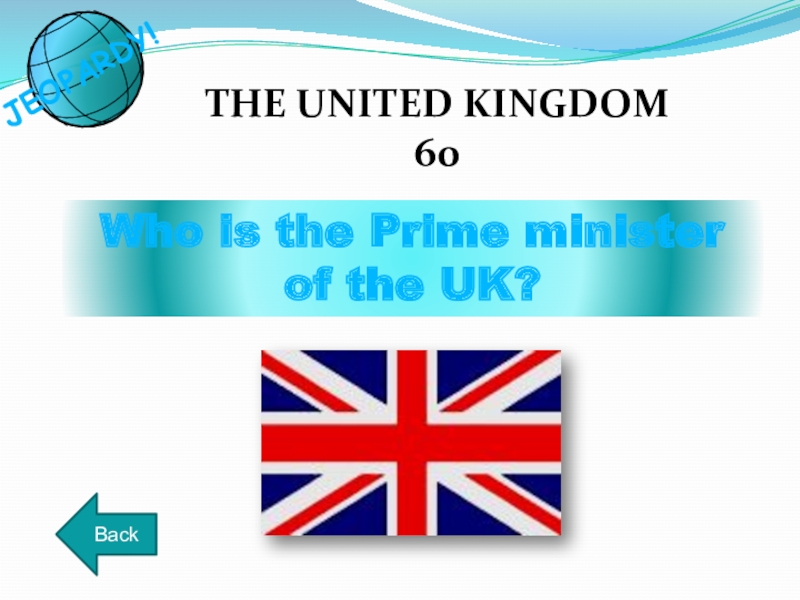 Who is the Prime minister of the UK?THE UNITED KINGDOM 60BackJEOPARDY!