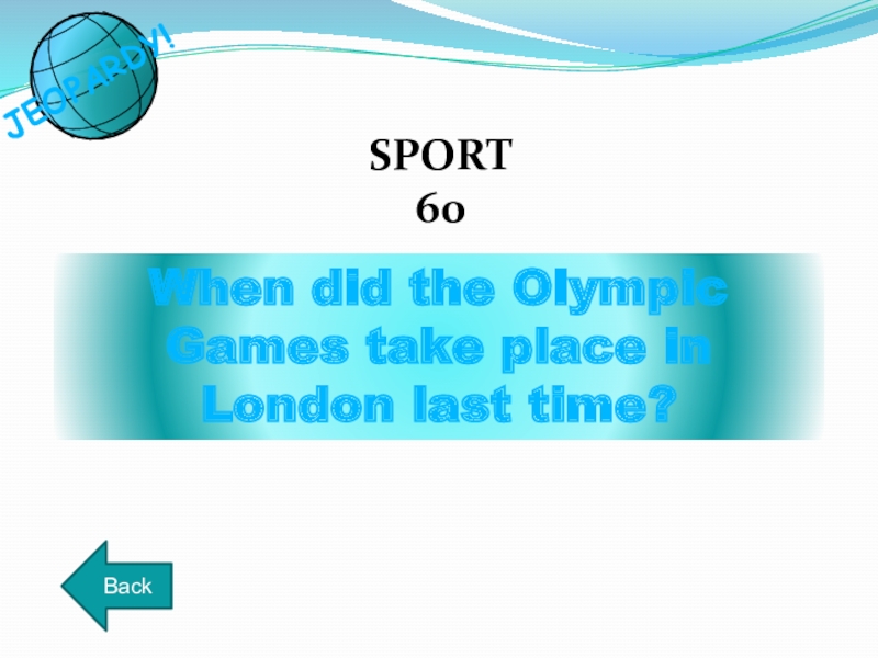 When did the Olympic Games take place in London last time?SPORT60BackJEOPARDY!